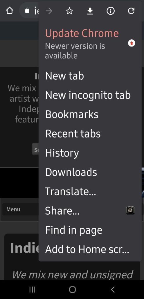 Launch Chrome for Android and open https://www.indieradiofm.com Tap the menu button and tap Add to home screen. Chrome will add us to your home screen.